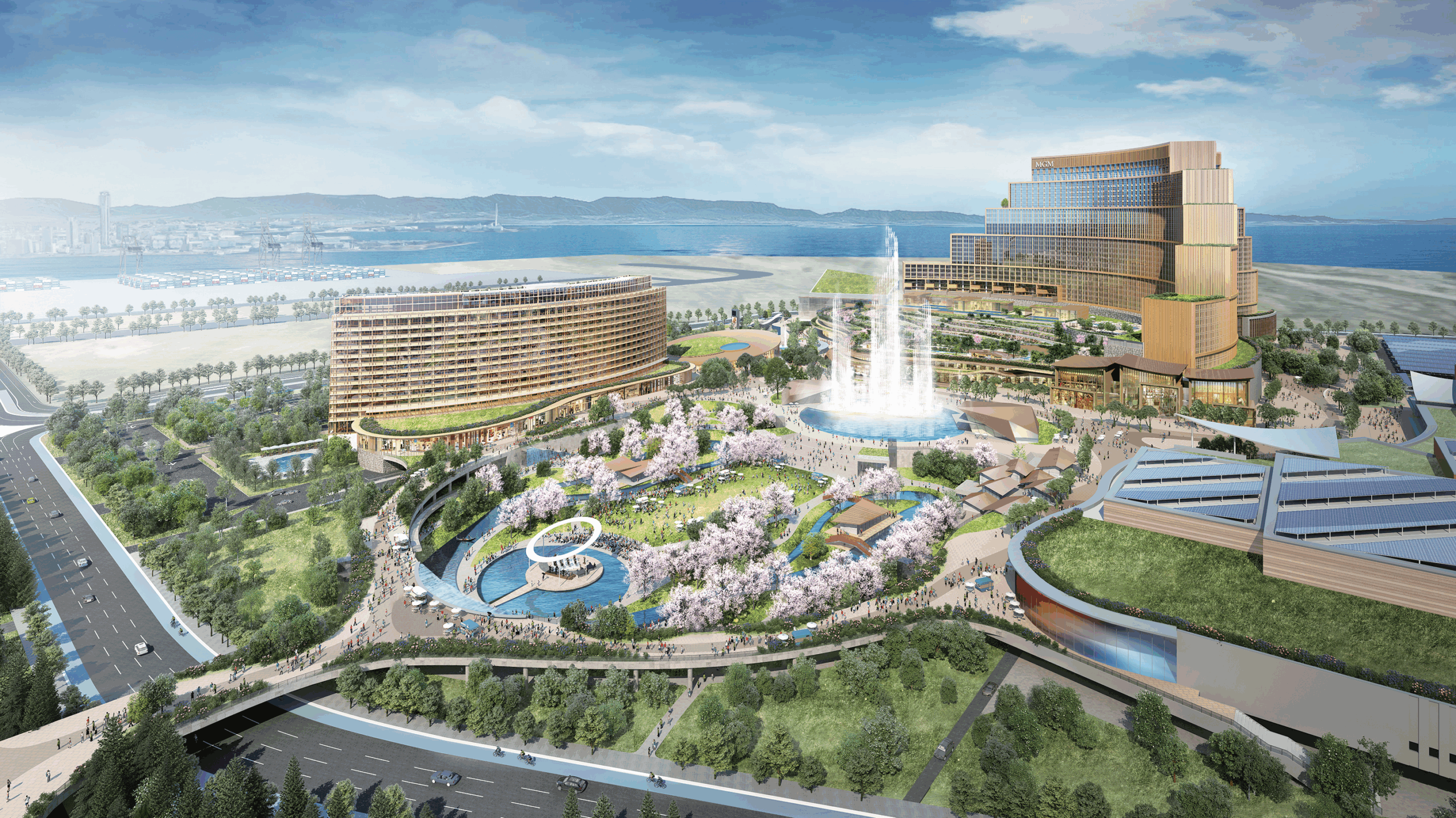 施設は敷地面積49㌶で、カジノのほか、3棟のホテル、6000人規模の国際会議場、商業施設などを備える。総事業費は約1兆2700億円。年間約2000万人の来場と5200億円の収益を見込み、そのうち470億円超が大阪府・市に納付される計画。約1万5000人の雇用創出も見込まれている。