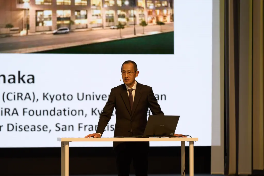 講演では、iPS細胞発見までの道のりと、再生医療・創薬などの実用化に向けた現在の動きを紹介した。また現在の課題として、資金調達の壁を超えられず学術研究が事業化にいたらないというように、学術界と産業界のあいだには「死の谷」があると指摘し、「その谷を克服してiPSのテクノロジーを早く患者に届けたい」と話した。また万博については「多くの若い人が足を運び、科学に興味を持ってもらい」と語った。