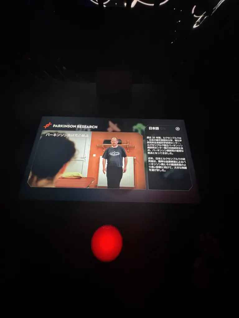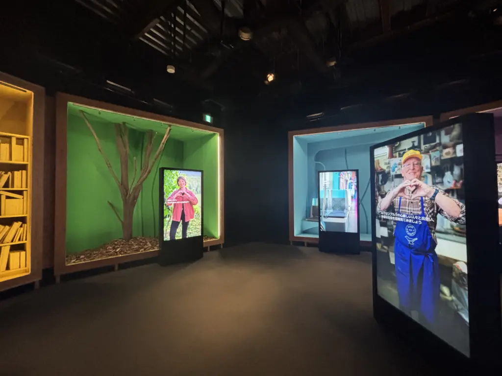 最初に案内動画を見た後、ルクセンブルクの人々がモニターに映し出された部屋に案内される。モニターの前に立つと、それぞれ自分の仕事や国内での取り組み、文化について語ってくれる。実際に目の前で話しかけてくれるような感覚になる。