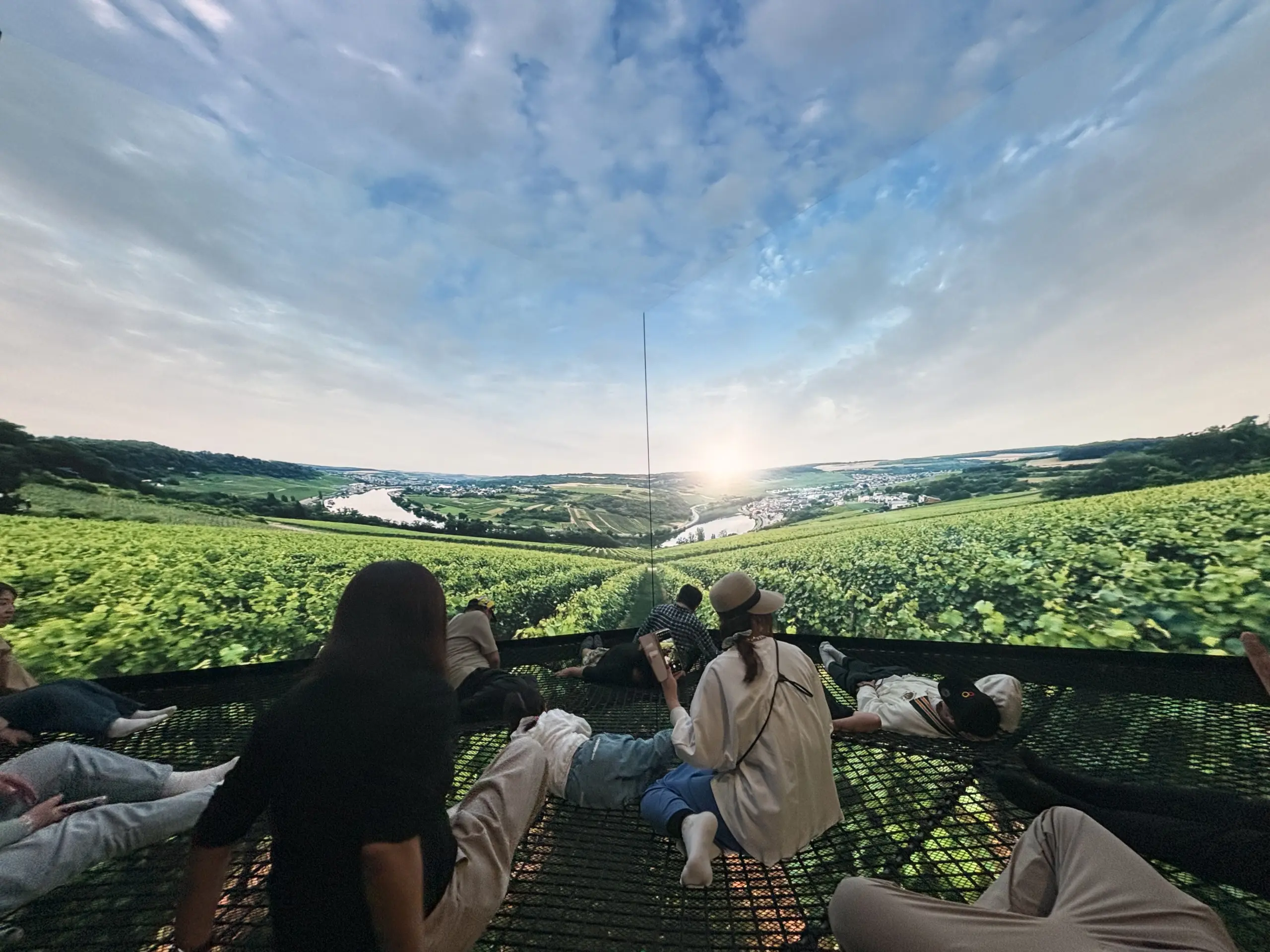 最後に、大画面に囲われたネットとベンチが置かれた部屋に移動する。ここではルクセンブルクの1日を映像で体験できる。ネットの上で寝転がってリラックスしながら観覧できる。