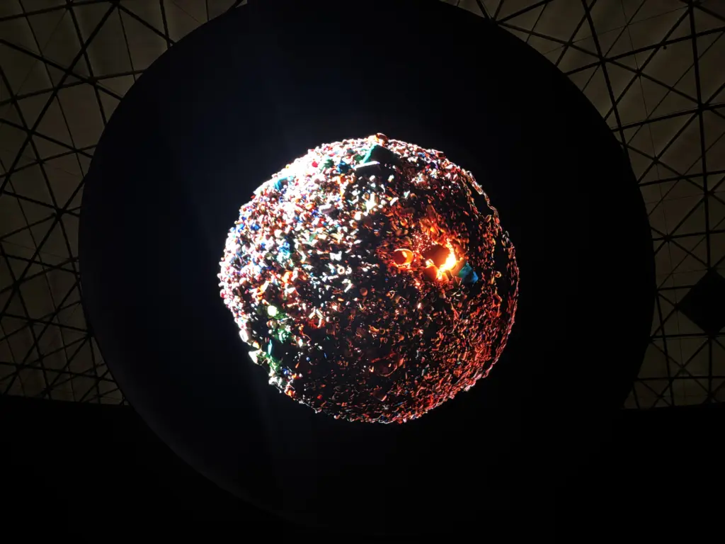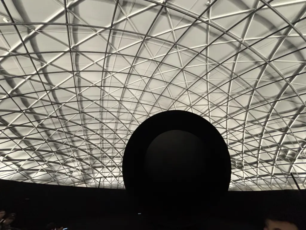 ドームBに順番に案内されると、真ん中に大きな黒い丸が。このスクリーンで繰り広げられる映像がメインコンテンツ。映像美に見入ってしまう。