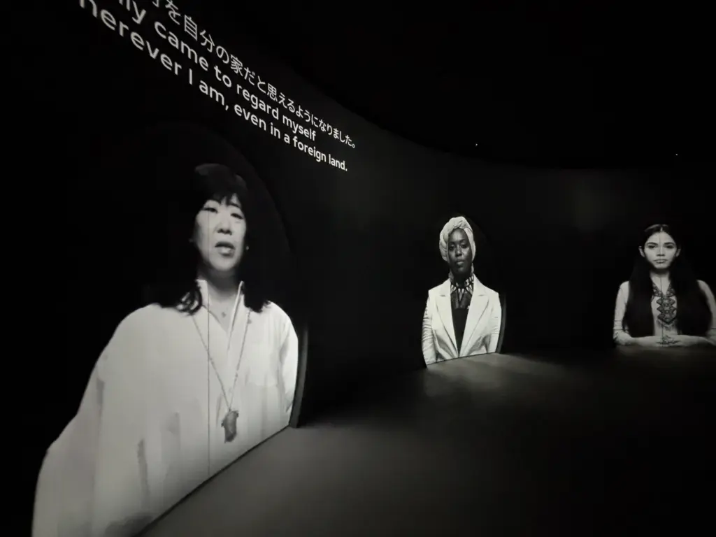 はじめに、3人の中から1人の女性の人生を追体験する。イヤホンの音声に従って、それぞれの通路に進んでいく。