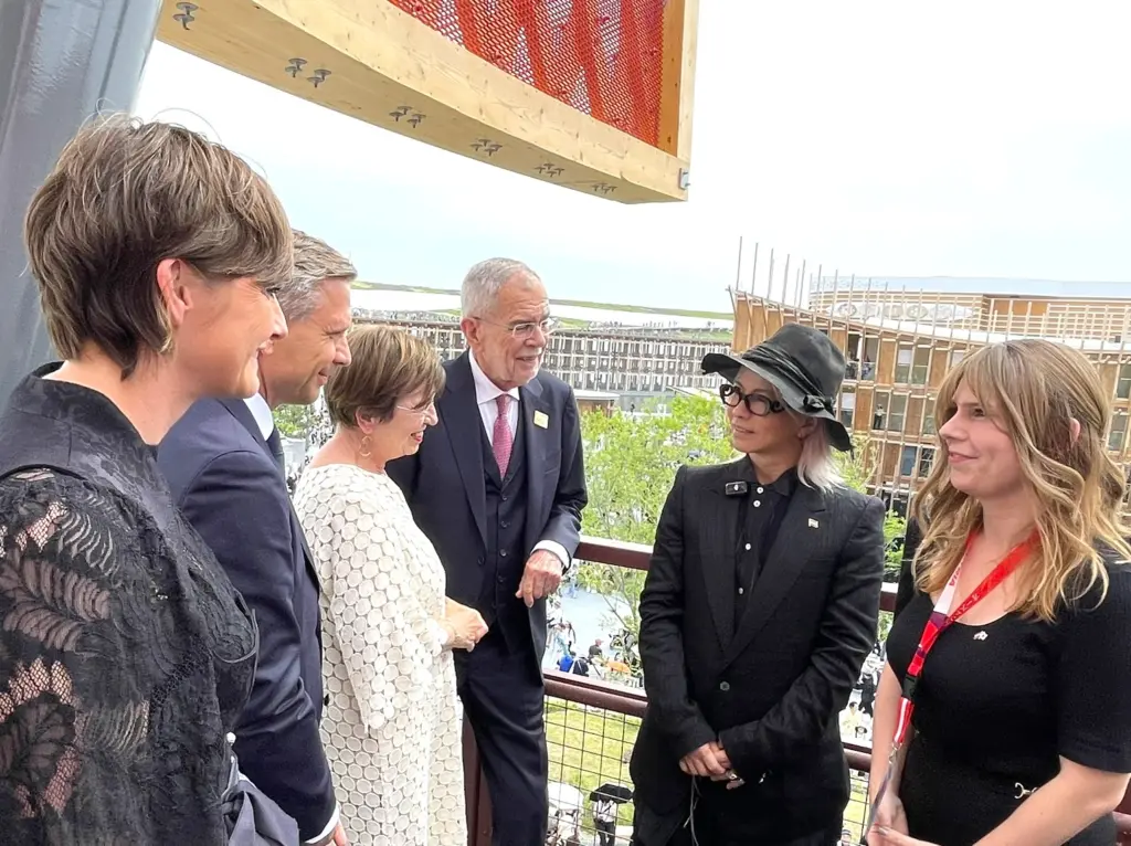 大阪・関西万博にオーストリアの観光親善大使を務める人気ロックバンド「L’Arc〜en〜Ciel」のボーカル・HYDE氏が5月23日、同国のナショナルデーにあわせてオーストリア館を訪れ、来日中のアレクサンダー・ファン・デア・ベレン連邦大統領らと対面した。