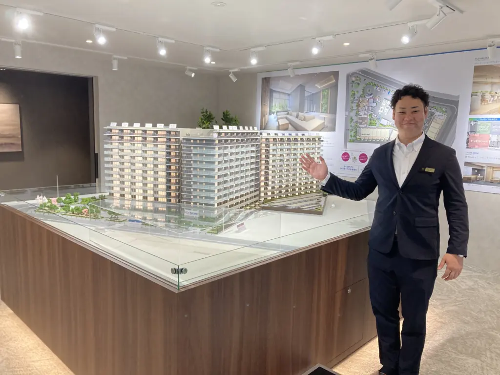 模型で物件の魅力を紹介する近鉄不動産の木村啓太さん