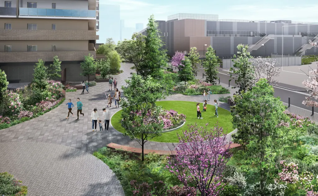 同物件は、「Life in Green」をテーマに掲げ、大阪市内の駅前にありながら、豊富な緑地を計画する。芝生やウッドデッキを備えた「コミュニティパーク」で景観に配慮。環境学習イベントなどの開催を通して、子どもたちの「緑育」にも貢献する。