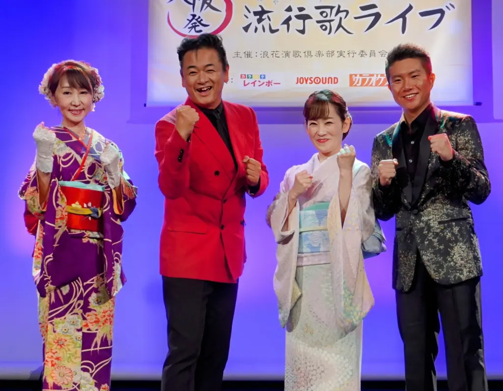 〝浪花演歌〟を実践する場としてプロ歌手数人が登場して生歌を披露する「大阪発流行歌ライブ」が開かれ、歌唱力では定評のある永井裕子(44)が11年ぶりに登場。最新曲「おんなの花道」はじめ、最近約10年の自身オリジナル全5曲を熱唱した。
