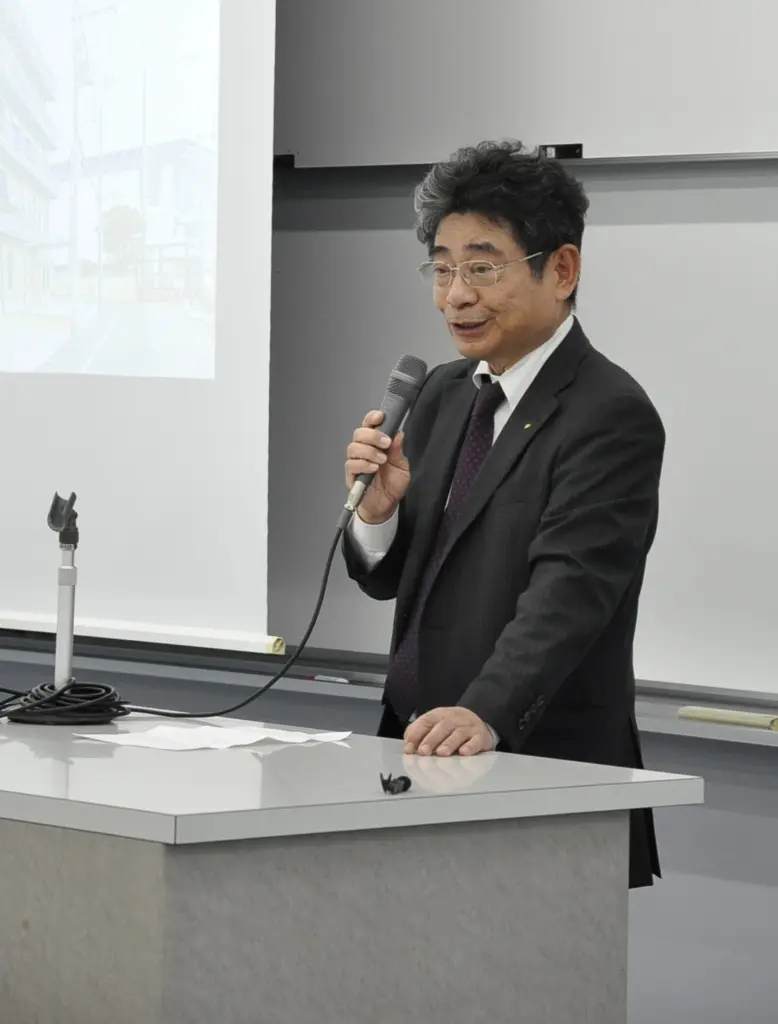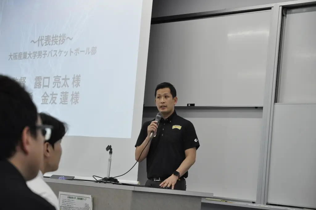 続いて、同大学男子バスケットボール部の露口亮太監督が登壇。「競技力向上だけでなく、人間力育成が学生スポーツの本質。清水会さまのご支援は、選手にとって大きな励みと誇りです」と感謝を述べた。副主将の金友蓮選手(4年生)も「支援を力に変え、結果で応えていきたい」と意気込みを語った。