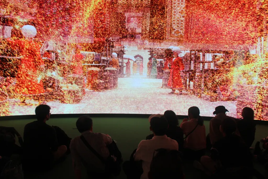 最初の部屋に入ると、そこでは円形の壁一面と天井も含めたスクリーンで映像が映し出され、トルクメニスタンという国がどんな国なのかを紹介しており、映像はなかなか迫力のある。