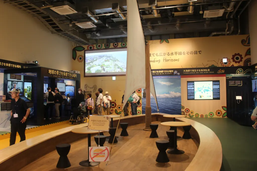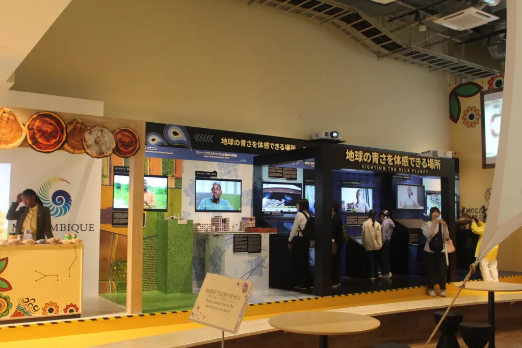 館内の真ん中には船をイメージしたセットがあり、イスとテーブルが用意されていたのだが、現在は何も使用されていない。本来は、ここでモザンビークのフードやドリンクを提供するつもりだったのだが、税関で食材が留められたまま、品物が届かないという。