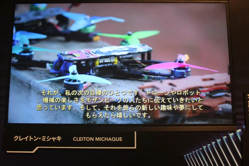 他のアフリカ諸国同様に、人口に占める若者の割合が高く、彼らのイノベーションの力に期待していて、その現れがパビリオン内に成功例としてパネルで紹介されている若い発明家たちだ。子どもの頃から廃材を集めてメカ工作をしていたジョエンツォ・カリストさんや、ドローンをゴミから集めたパーツで自作するクレイトン・ミシャキさん。