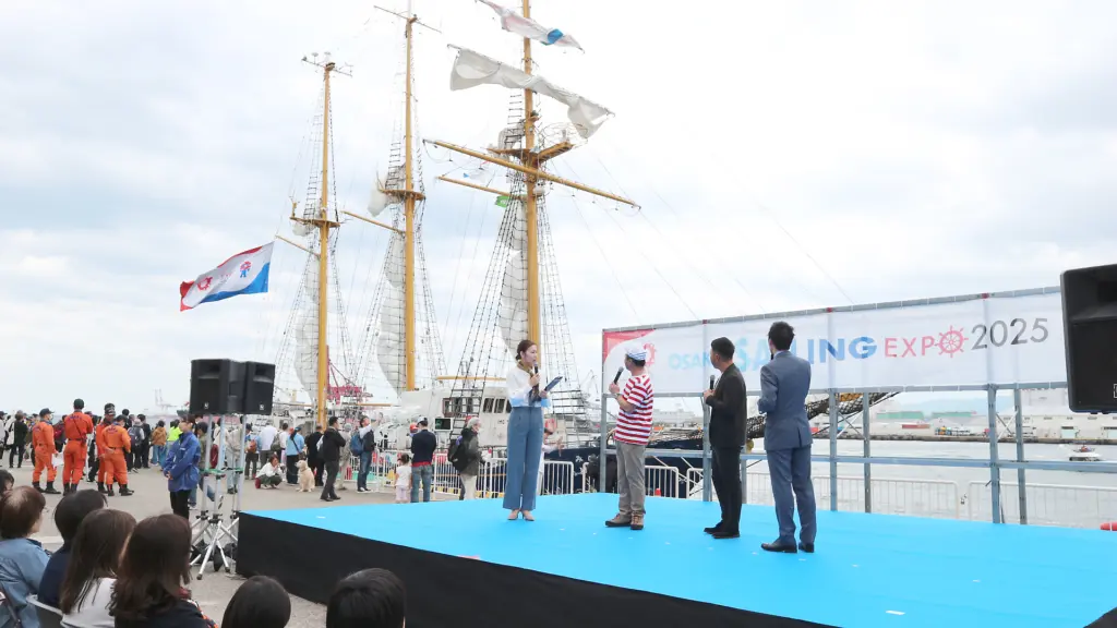 パレードに参加したのは日本の帆船「日本丸」「BLUE OCEANみらいへ」「Ami」の3隻と、50隻以上のヨット。大阪湾の海風を帆に受け、スタート地点の夢洲西岸からゴールの天保山まで約1時間かけて航行した。パレード後には大型帆船が天保山岸壁に係留し、帆船の一般公開や天保山マーケットプレイス前でのステージイベントなどでにぎわった。