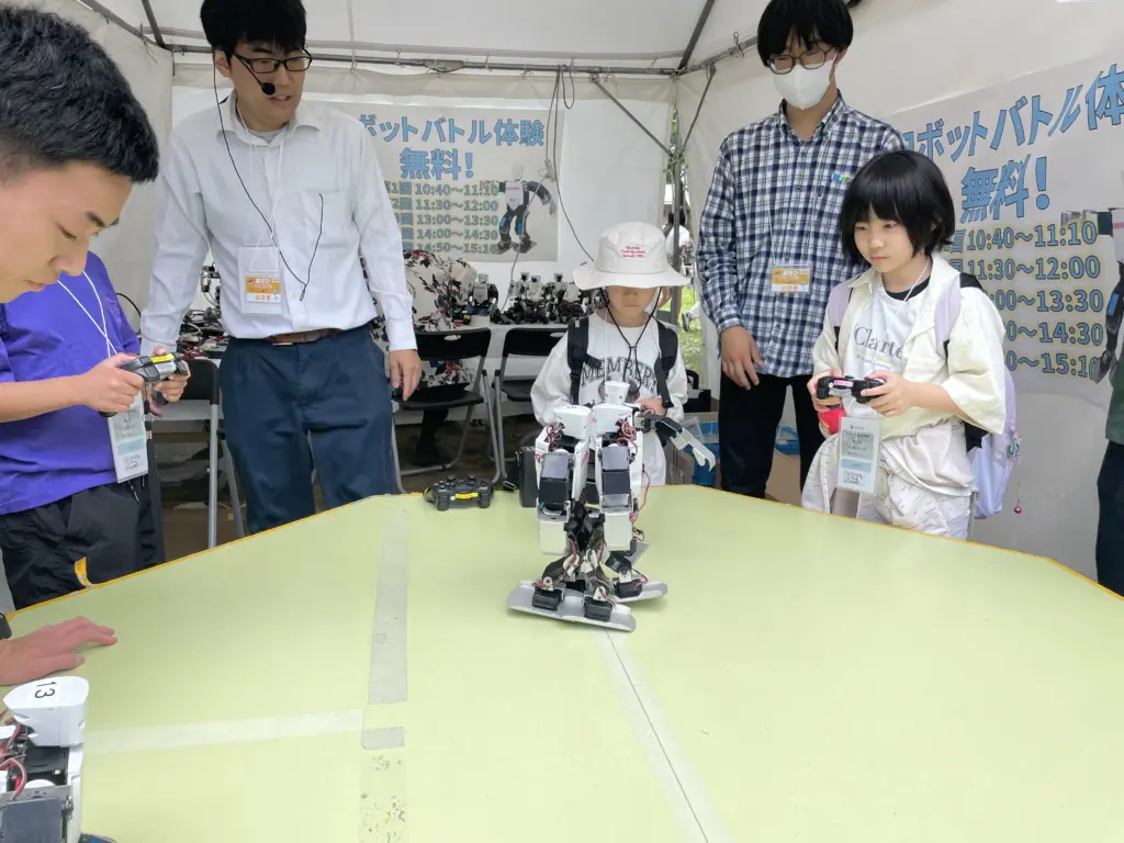会場には地元の商店街や福祉団体、大学などがブースを構え、たこ焼きや焼き菓子などの飲食に加え、ロボット操縦やスライムづくりといったものづくり体験も充実。子どもから大人まで、幅広い世代が笑顔でブースを巡った。ステージでは、大学吹奏楽団による演奏や、文化部による書道パフォーマンスなども披露され、来場者の足を止めた。