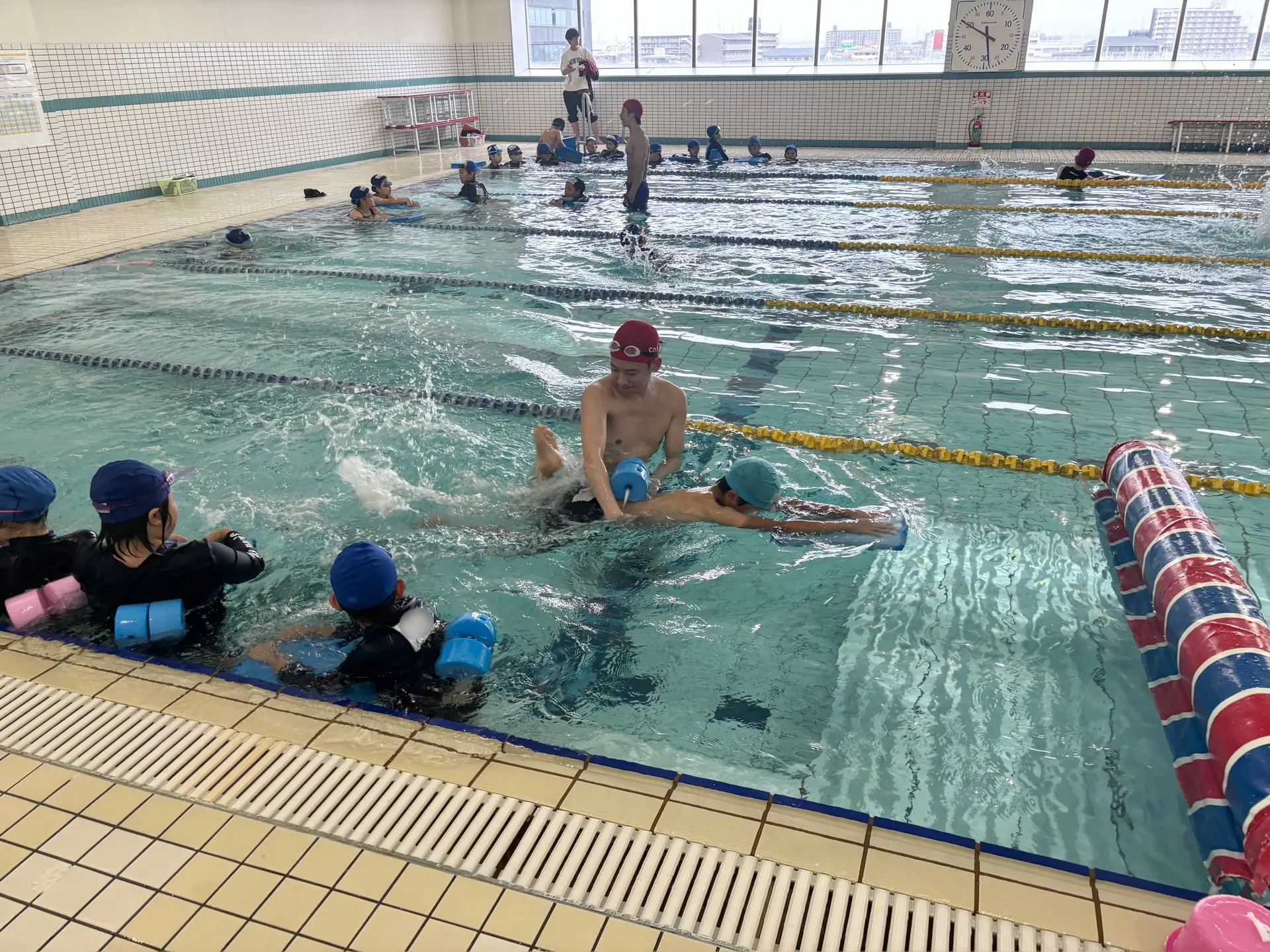 同市立灰塚小学校の児童が6月3日、市内のショッピングセンター「ポップタウン住道オペラパーク」内にある「コ・ス・パ住道店」の温水プールで授業を実施。当日は雨天だったが、3回に分け約260人の児童がインストラクター10人から泳力別の指導を受けた。児童からは「雨でもプールの水が温かくて良かった。コーチも優しく、たくさん泳げて楽しかった」との声が聞かれた。