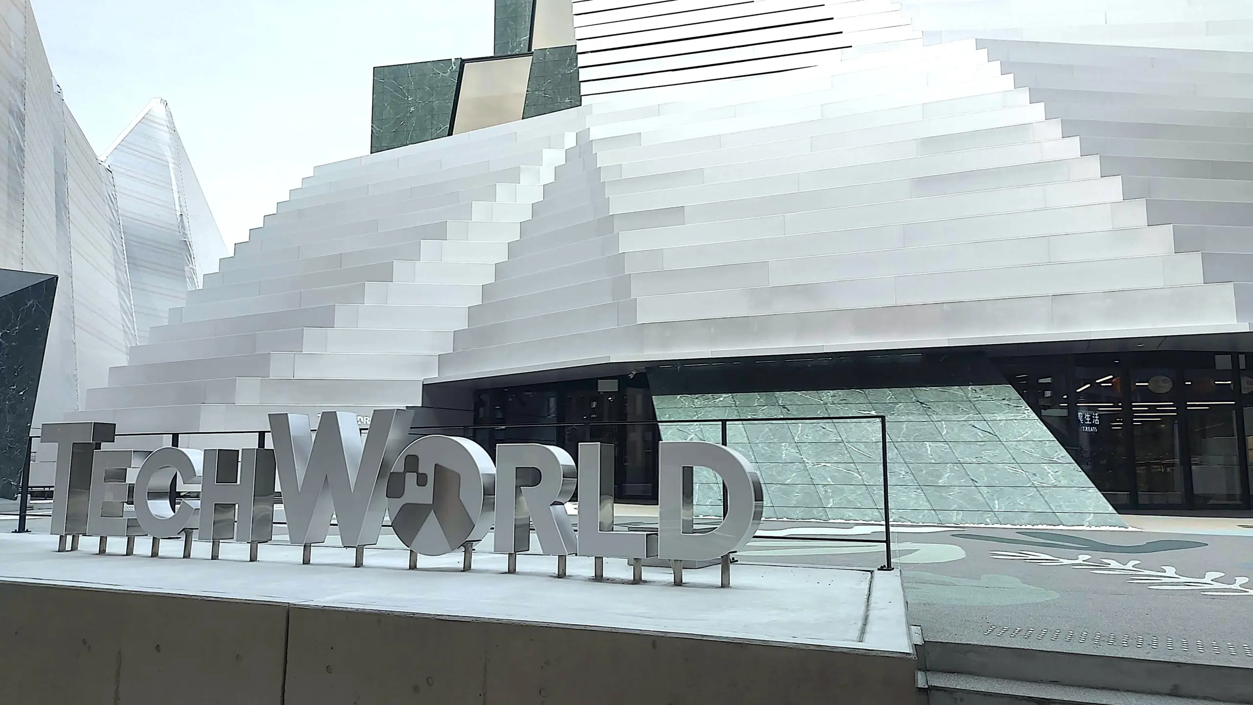 シルバーカラーに塗られた山脈の様な形のTECH WORLDパビリオンは、台湾の人や自然、テクノロジーを余すところなく体感することができるパビリオン。