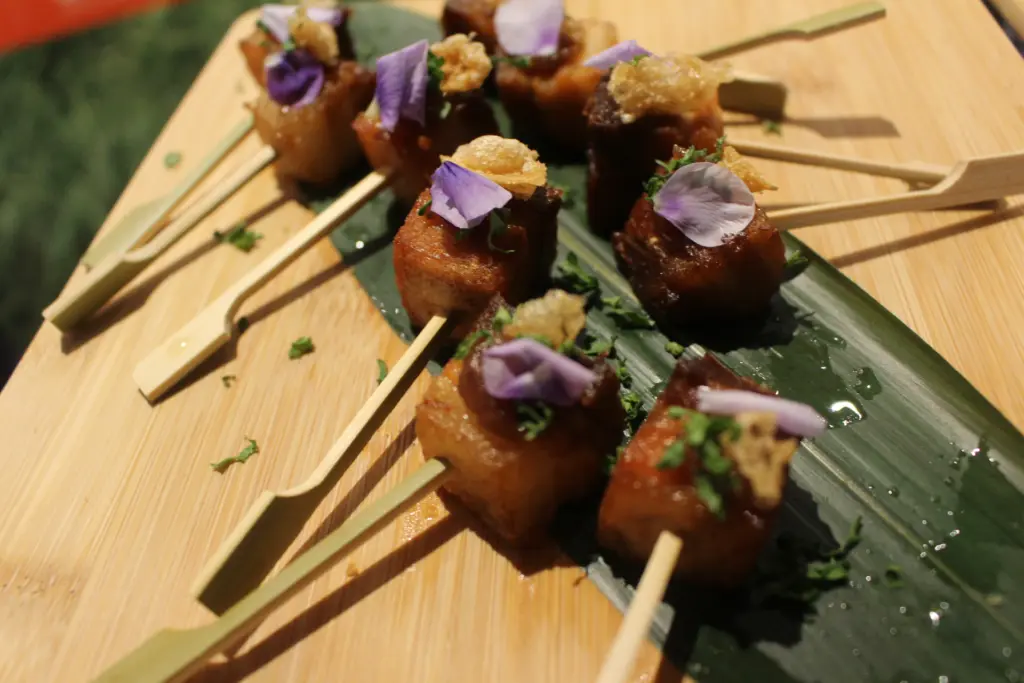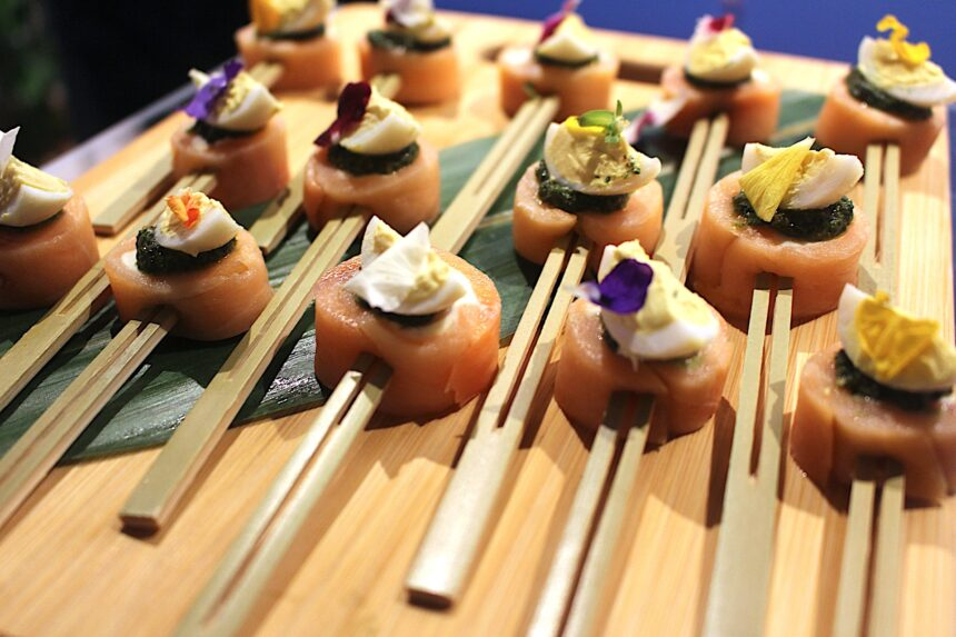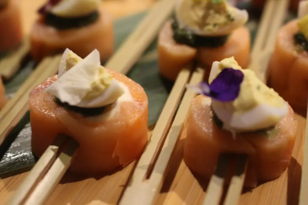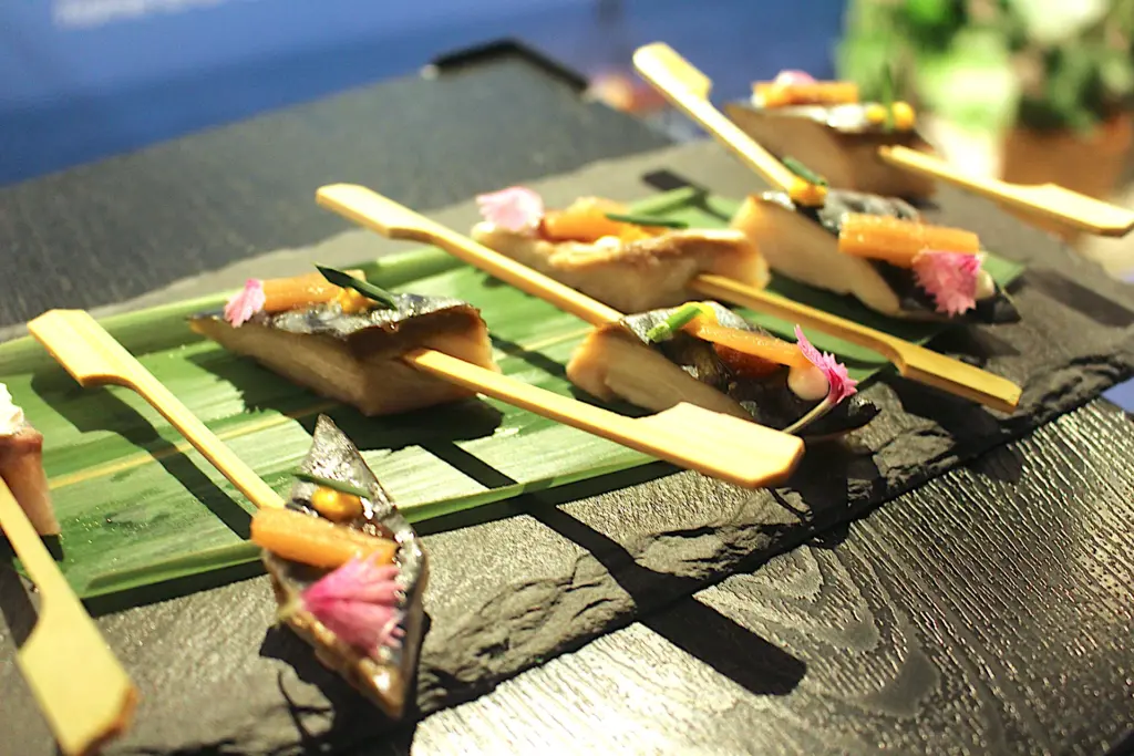 英国のフードということで、どんなものが出てくるのかと思っていたが、最初に試食した鯖やサーモンを使った料理は、一言で言って「うまい」。脂のノリがよく、魚の旨味が滲みでていた。どちらもおいしかったが、特に鯖は脂が乗っているのにしつこさがなく食べやすかったのが印象的。