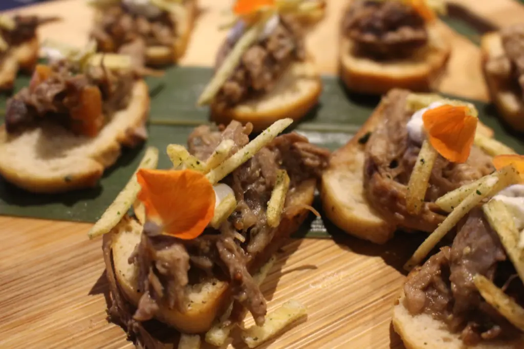 ラム肉に関しては、ウェールズでは羊の放牧が盛んで、栄養価も高いためポピュラーな食材だそうだ。豚肉は甘みと旨みが程よくバランスしていて幾つでも食べられそうだった。