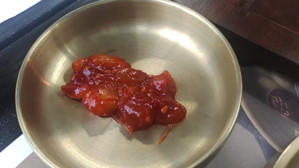 プルコギといえば、薄切りの肉に醤油と砂糖の濃い甘辛味に味付けして、フライパンや鍋で煮るものが一般的だが、ここで提供するプルコギは彦陽(オンヤン)プルコギと呼ばれるもので、蔚山(ウルサン)広域市の彦陽(オンヤン)地域に由来する、伝統的で地元の郷土料理のプルコギだ。