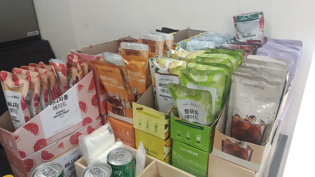 またオシャレなパッケージに入ったドリンクは、韓国では人気のブランドから直接取り寄せており、封を切って氷の入ったカップに入れて飲むお手軽タイプ。