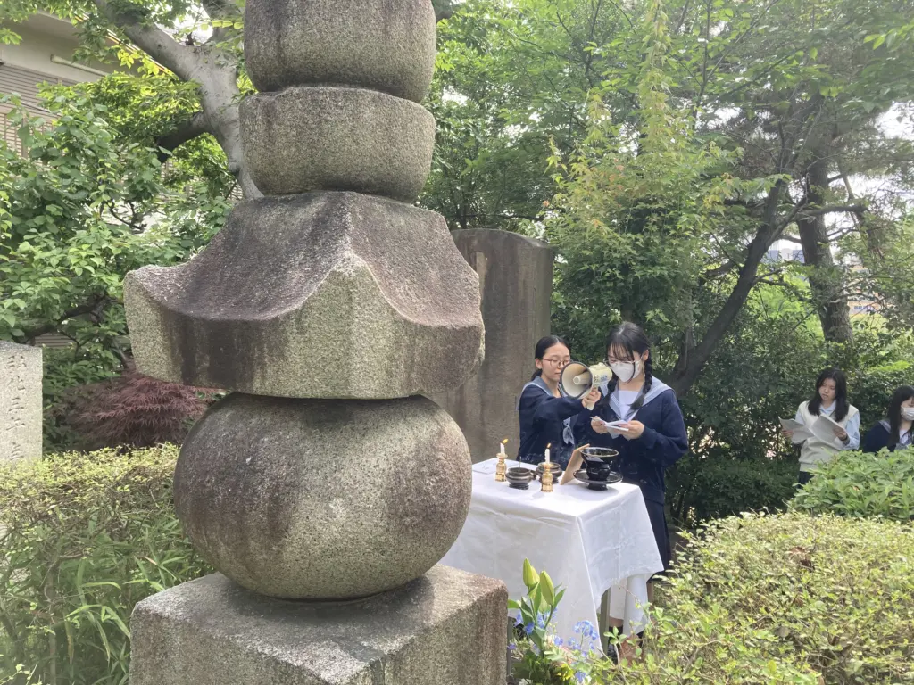 明浄学院高等学校(大阪市阿倍野区、渡邊雅彦校長)は、鎌倉時代の歌人・藤原家隆卿の功績と遺徳をしのび、生徒と教職員が詠んだ和歌を捧げる「家隆忌(かりゅうき)」を、天王寺区夕陽丘にある「家隆塚」で執り行った。