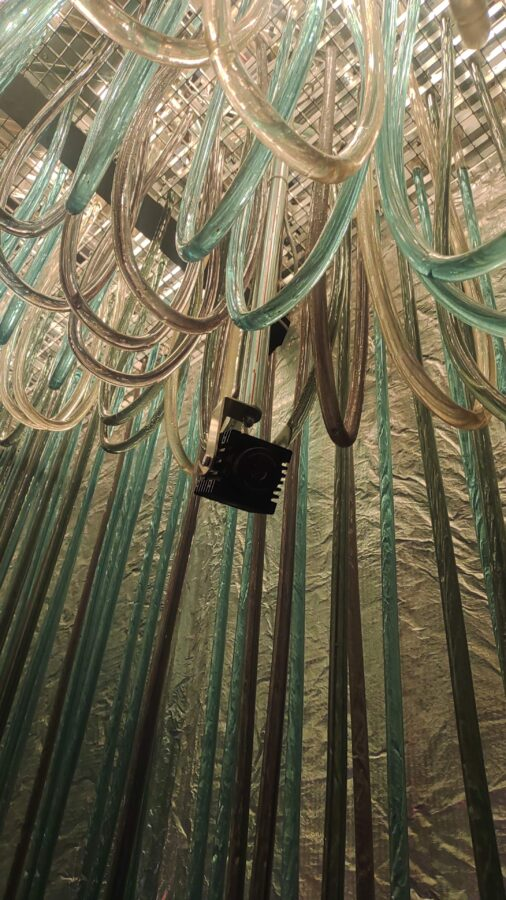 ここで使用されているパイプの長さは13キロメートルもあり、そのパイプが水の壁を作り、3トン以上の水を使って温度調整しているという。パイプは4色あり、各色のパイプは違う温度に設定され、その中を流れる水の温度差で、パビリオン内の各場所の温度差を生み出しているのだ。