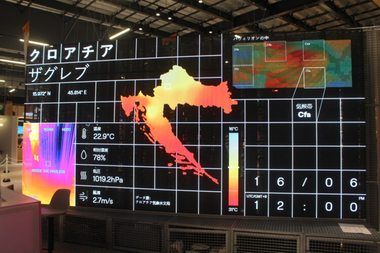 このシステムのおかげでクロアチアパビリオンでは、クロアチアの5つの違うエリアの温度をリアルタイムで再現し、日本にいながらクロアチアにいる感覚にしてくれている。