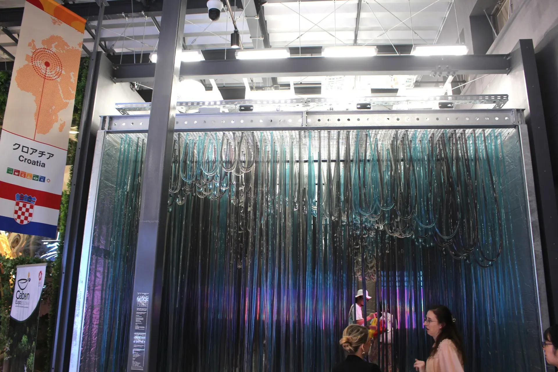 コモンズ館Cにあるクロアチアパビリオンは、無数のパイプが垂れ下がっていて、外からみても何をしているのか全くわからない不思議なパビリオン。
