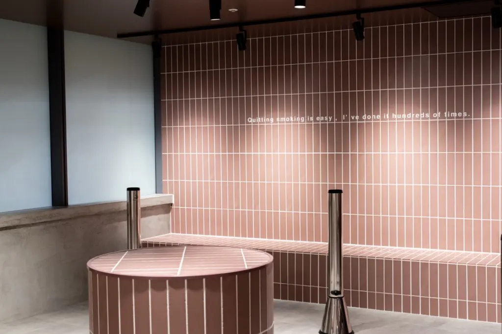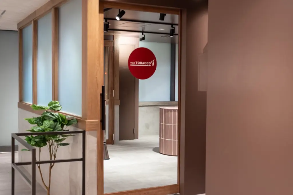 また、同ラウンジ内には、新たな喫煙所ブランド「THE TOBACCO」を展開するコソド(東京都)が手掛ける「THE TOBACCO KYOCERA DOME OSAKA」が併設される。従来の閉塞的な喫煙所のイメージを払拭する〝開かれた喫煙所〟を目指す。柔らかな桜色のタイルや視線を和らげる設計、安心感ある導線により、女性でも利用しやすい配慮が施されている。