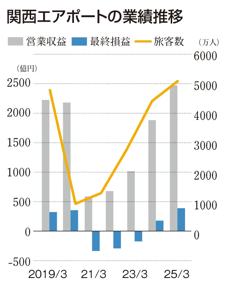 20年度に約300億円の赤字を計上して以降、21〜24年度は黒字を維持し、業績は完全に回復。免税店や飲食店などの収益も堅調で、安定した収益基盤を支えている。