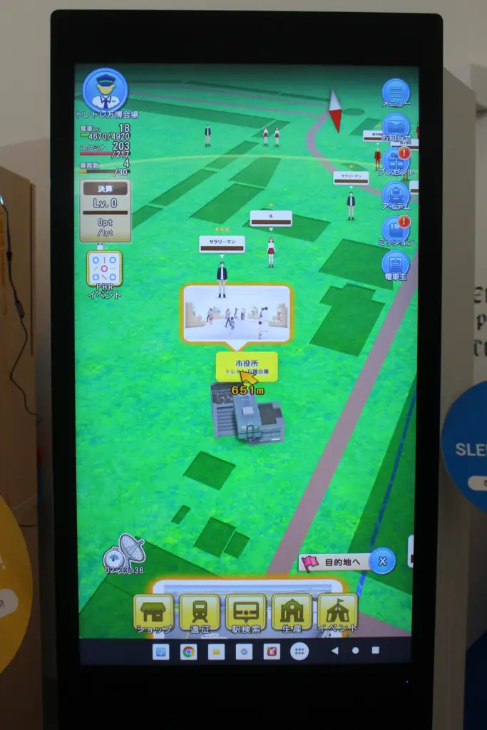現実世界の移動がアプリ内に反映され、アイテムを収集しながら移動する位置情報ゲーム。エムティーアイの 「CARADA健診サポート」、大阪府の「アスマイル」に記録した健康診断情報等を活用し、リアルワールドゲームスのゲームアプリ「トレイントレイン」がより健康になるためのおすすめの目的地を提案し、移動を促す。