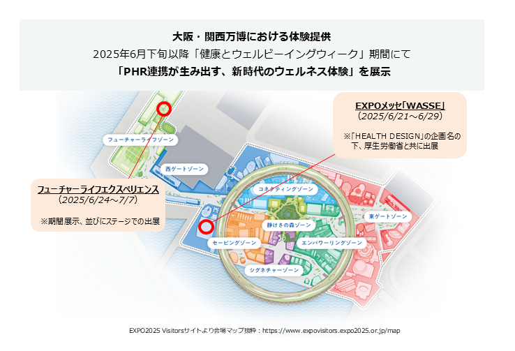 万博会場の西端にあるフューチャーライフヴィレッジ内フューチャーライフエクスペリエンスで、6月24日から7月7日まで、「PHR連携が生み出す、新時代のウェルネス体験」が開催中だ。