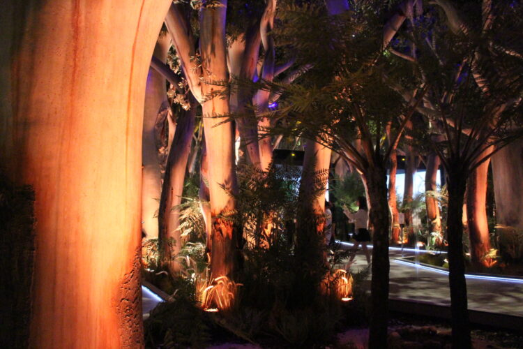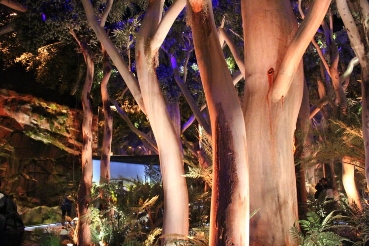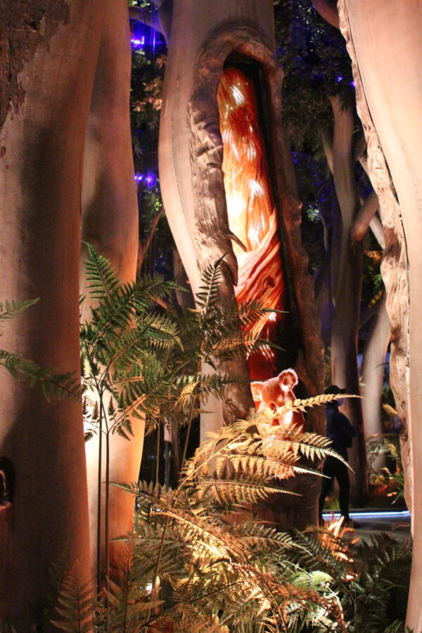 館内に入るとオーストラリアの原生林を彷彿させる空間が広がっている。木々の間にはコアラなどがいて子どもたちも喜びそうな演出になっている。
