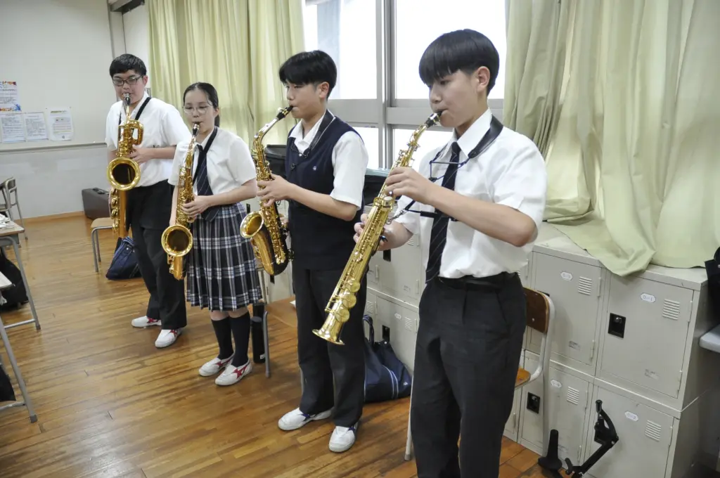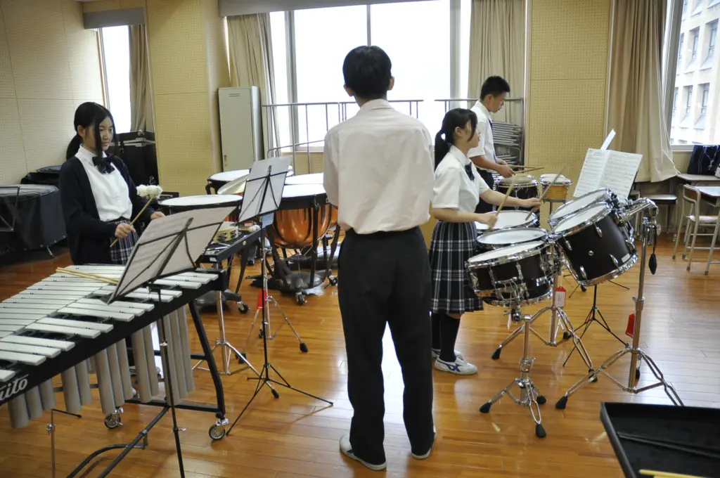 同校吹奏楽部の特徴は「礼儀」と「メリハリ」。年齢を問わず発言できる風通しの良い雰囲気があり、上下関係に縛られず互いを尊重する文化が根づいている。部内では「セッティング係」「譜面係」など役割分担が明確で、協調性や時間管理の重要性を自然に学べる点も強みだという。