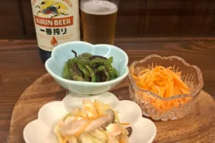 夜になると、カウンターに手作りのおばんざいが並び、家庭的な温もりあふれるちょい飲み空間に早変わり。ランチにも晩酌にも使い勝手がよく、訪れる人のライフスタイルに寄り添う一軒だ。