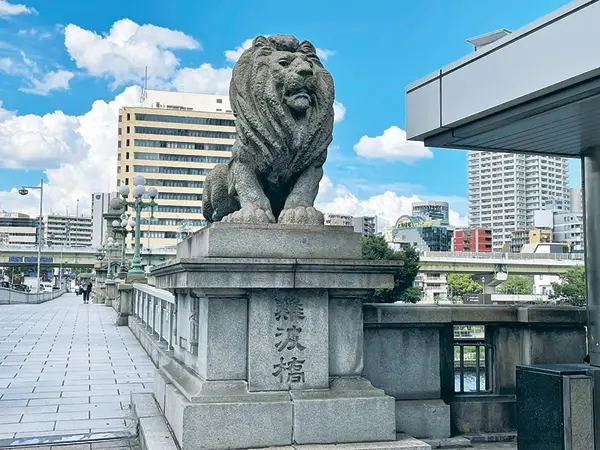 ちなみに、難波橋のライオン像には諸説ある。橋が架けられた1915年は天王寺動物園が開園した年でライオンが連想されたとも。パリのセーヌ川に架かるポンヌフ(パリに現存する最古の橋)を参考に設計されたことから、アレクサンドル3世橋のライオン像を模したともいう。また、「西ひがし みな見にきたれ なには橋 すみずみかけて 四四の十六」という江戸時代の狂歌にある「四四=獅子」に掛けた〝しゃれ〟という説もある。