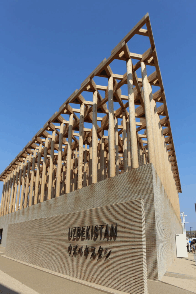 木造建築のパルテノン神殿? と思いそうな建物がウズベキスタンパビリオン。
