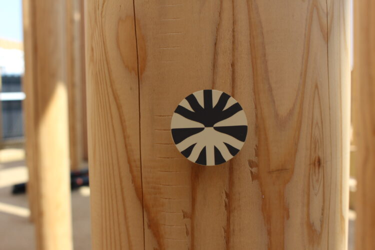 木材にはトラッカーが付けられており、トラッカーにスマホをかざすとどこで伐採された木材なのかを確認できる。