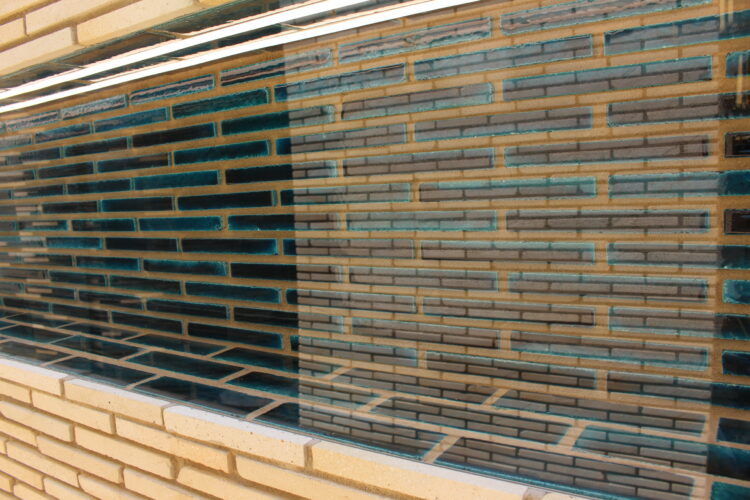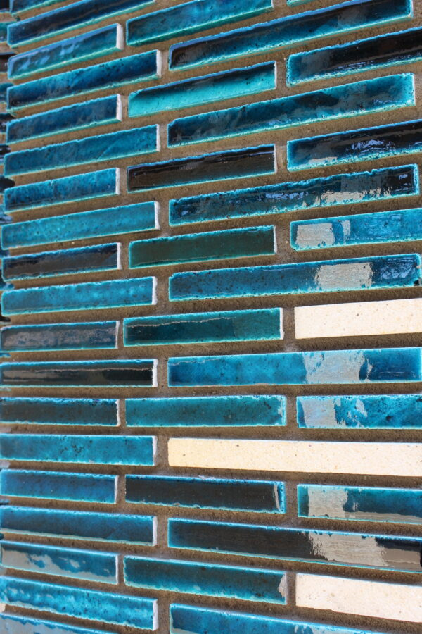 このパビリオン建設に使った素材の中で唯一ウズベキスタンから持ってきたのがこの青いタイルたちだ。とても綺麗で特徴的なターコイズブルーのような青をしている。