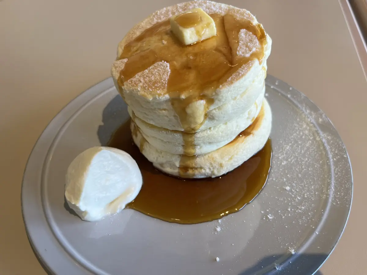 同店人気の「ふわふわリコッタパンケーキ」は、型を使わずに1枚ずつパティシエが鉄板上で焼き上げている。「中にリコッタチーズを閉じこめているので、口にした時の香りがより一層楽しめます」と店長の石田江梨果さんは話す。