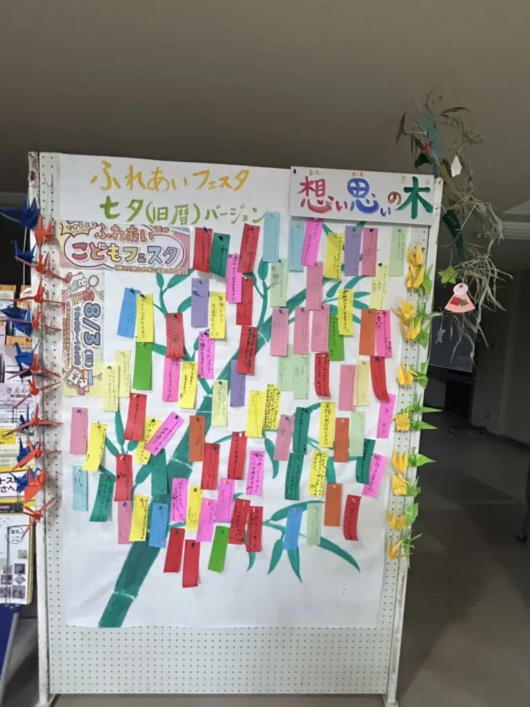 この日はひと際目立つ子どもらの願いを短冊に込めた「想い思いの木、七夕バージョン」も展示される。当日は、寝屋川市で現在審議中の子どもの権利条約を考える一環として、小、中学生が参加する「子ども会議」も開催する。参加したい小、中学生がいれば当日でも受付するという。