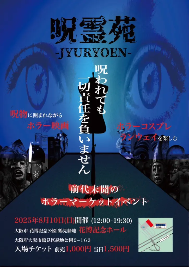 主催者は「観て・買って・食べて・震える、〝前代未聞〟のホラーマーケット。夏の思い出に残る恐怖体験をぜひ味わってください」と呼びかける。最新情報は公式X(@jyuryoen_info)や公式サイトで随時更新中。