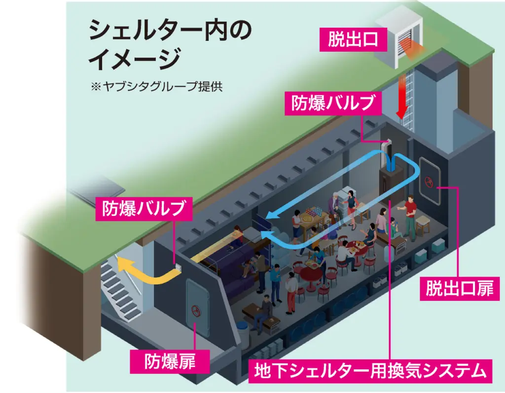 シェルターの換気装置を開発するヤブシタグループの森忠裕社長がこう実情を明かす通り、日本の普及率はわずか0.02%に留まっている。