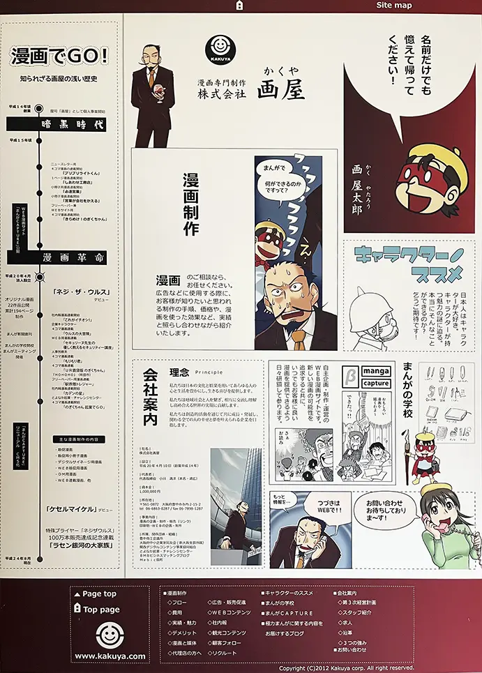 完成した漫画を納品すると、「わかりやすくておもしろいな!」と、とても喜んでもらえたという。こうして、小川社長は漫画は雑誌以外にも需要があることに気づく。「『これを商売にしてみよう!』と。営業マンをしたことで、企業の販売促進ニーズを捉えることができたことも大きかったですね」