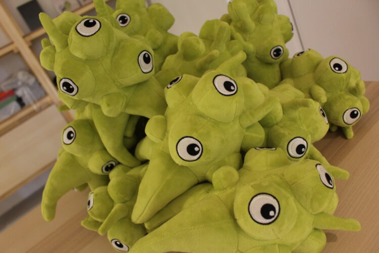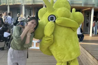 ちょっとミャクミャクに似た様相だが、ミャクミャクを真似たわけではなく、1970年当初からこのデザインだったようで、当時はガラスでできていたものを、今回の万博に合わせてぬいぐるみにしたのだ。