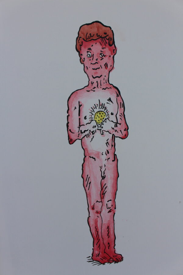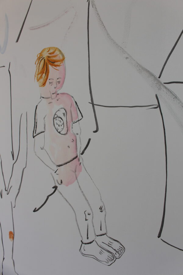 進んでいくにつれて、様々なイラストが壁に描かれているが、どれも謎かけ的な要素があり、アーティストが1つずつ手書きしたもので、描かれた人間の体内にある丸い物体が先祖から伝えられてきた大事なものを現している。それが何かという定義はなく、各自にとっての価値あるものということで、それぞれで考えてほしいという説明だった。