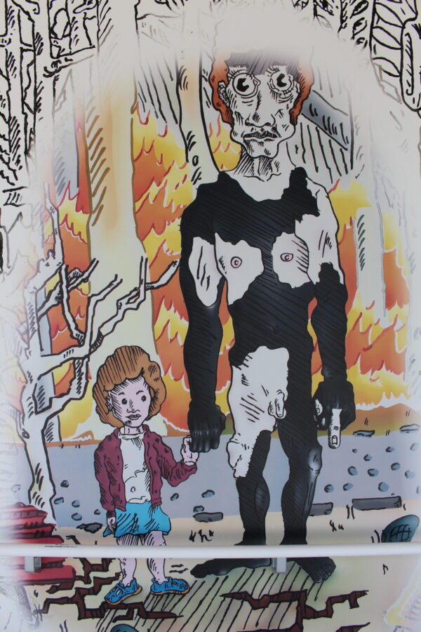2023年のワールドベースボールクラシックの際、チェコチームは日本チームと対戦。チェコにはプロ野球チームはなく、普段教師や電気店を営んでいる人がナショナルチームを結成して日本のプロ選手チームと対戦し、アマチュア投手があの世界の大谷選手を三振に取ったということが大ニュースになったことを讃えてのイラストだ。これはチェコ人たちのプライドと誇りを現したイラストであり、日本との親交の証でもある、意味深いものなのだという。