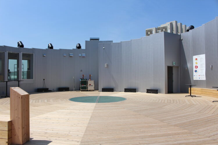 ここまで建物の外周に添って屋上まで上がってきたが、この建物の中は2階と3階が吹き抜けのオーディとリアムになっていて、コンサートやパフォーマンスが行われたり、ビジネスミーティングに使われたりする作りになっている。