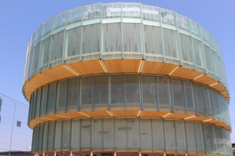 また、中ほどにあるガラス性の丸くなっている部分は、その下にあるオーディトリアムの天井になっている。