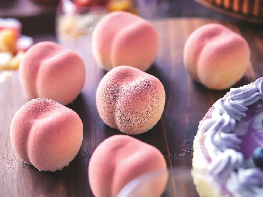 桃をテーマにしたシリーズの第2弾「Craft Your Waffle Cone ~ピーチ&アイスクリーム スイーツビュッフェ~」が開催中。ビュッフェカウンターには、旬のモモを主役に夏らしさを感じるスイーツやセイボリーが並ぶ。いつも好評の“DIYエリア”では、すべてパティシエの手作りによるフランスの薄焼きクッキー「ラングドシャ」のコーンとカップが登場。ピーチやチョコクッキー&ミント、ブルーベリーヨーグルトなど5種の自家製アイスから好みのフレーバーを選ぶことができ、さらに夏のフルーツなど全23種類の多彩なトッピングで自分だけのオリジナルアイスクリームを作ることができる。