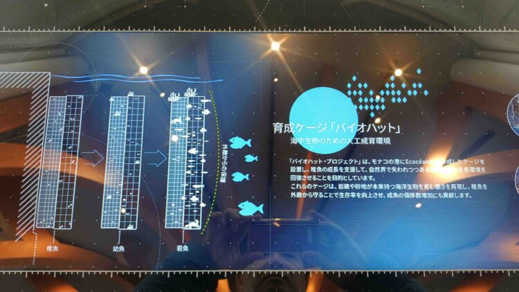 そのため、来館者がモナコパビリオンに到着すると、このTake care of Wondersを紐解いていくことになります。それは一種のマニフェストで、訪問者の旅を組み立て、彼らに「この驚きと、驚きが何であるかを発見してください」と伝えます。モナコがどうやって都市や環境や自然と共生しているのかを学び、それに続いて海洋を守る方法を伝えています。このようにTake care of Wondersを細分化してそれぞれのチームが担当し、環境保護の大事さとその方法を紹介します。