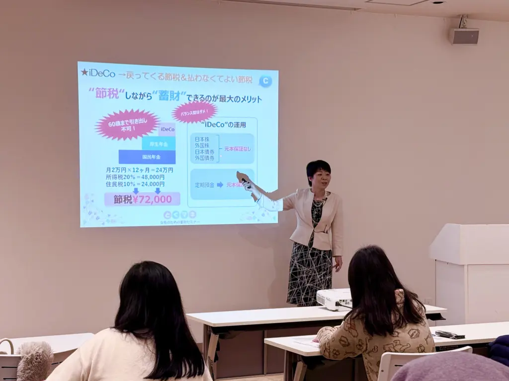 大阪市内で月1回ペースで開催中。次回は8月23日・午後1時半〜同3時半、「働く女性の節税と蓄財セミナー」をグランフロント大阪 北館5階で開催予定。開催日の前日まで申し込み可能だ。
